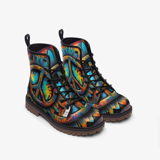 Emerald Blossoms - Cool Cat on Hippie T-Shirt, Peace Symbol Casual Leather Lightweight Boots for Hippies